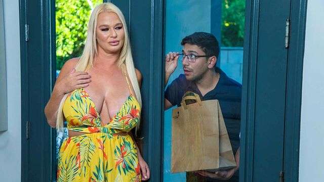 אישה בודדה עם ציציים גדולים שכנעה שליח צעיר לסקס