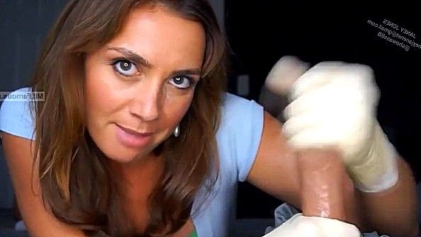 לבשה כפפות לטקס ואוננה את זין בעלה