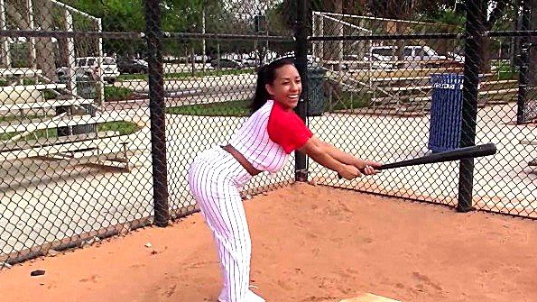 לטינה עם חזה גדול שיחקה בייסבול ומזדיינת עם המאמן