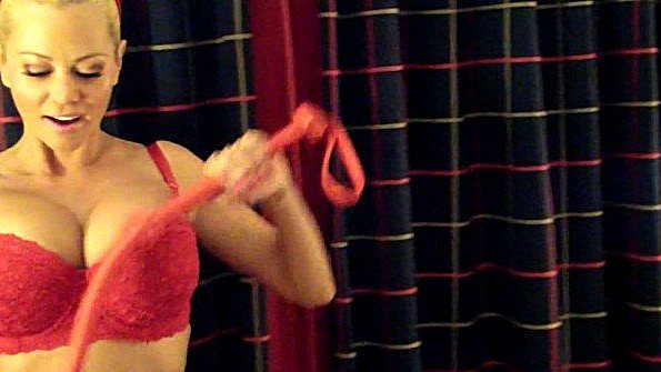 Tied up a lady in her prime and stimulates her pussy with a vibrator in bed