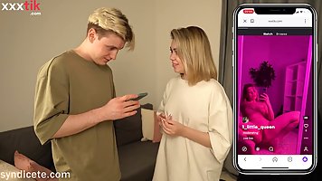 A girl with bright hair jerks off a guy’s dick in homemade porn
