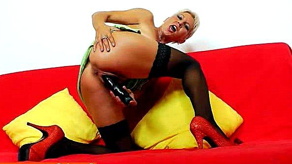 Anal masturbation of a red-haired slut with toys