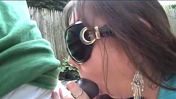 Mature lady with large tits getting fucked in the ass on a green lawn