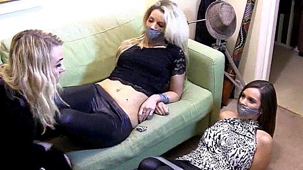 Adult slaves desperately trying to free themselves from duct tape