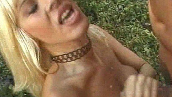 A promiscuous blonde agrees to fuck with pick-up artists in the forest