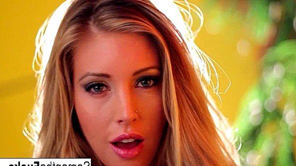 A young blonde flirtatiously squeezes her pussy with her fingers
