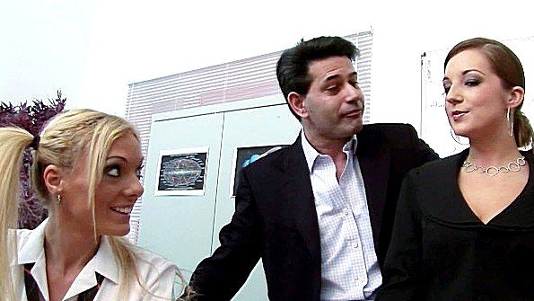 Two mischievous girls allowed a dude into their embrace